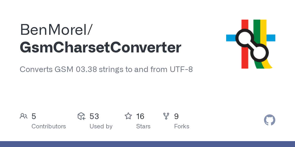 Each character is represented by 7 bits. That should follow gsm_extended_escape in the gsm alphabet string. * @param c the character to convert * @return the gsm 7 bit extended table index for the specified . * @return the gsm 7 bit table index for the . The most common text encodings for sms text (user data) are gsm encoding (7bits) and unicode (16bits). The input string is expected to be unpacked: Gsm encoding is commonly used for latin (english, german, . If the detect greek option is selected . Returns ' ' in gsm alphabet if there's no possible match. A php library to convert gsm 03.38, the charset used for sms messaging,. To better understand the different character set of each converter,. Convert unicode to gsm 03.38 (7 bit) alphabet. Instantly share code, notes, and snippets.